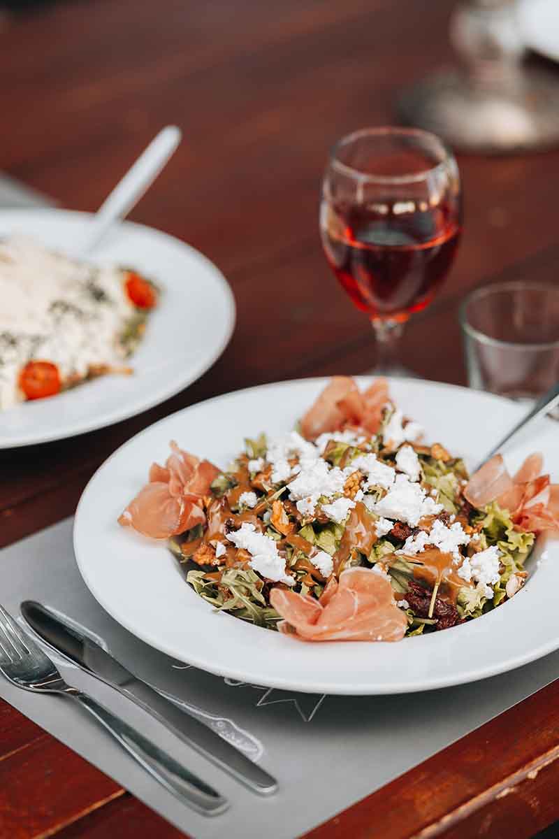 Ricotta, radicchio, prosciutto salad, cabernet